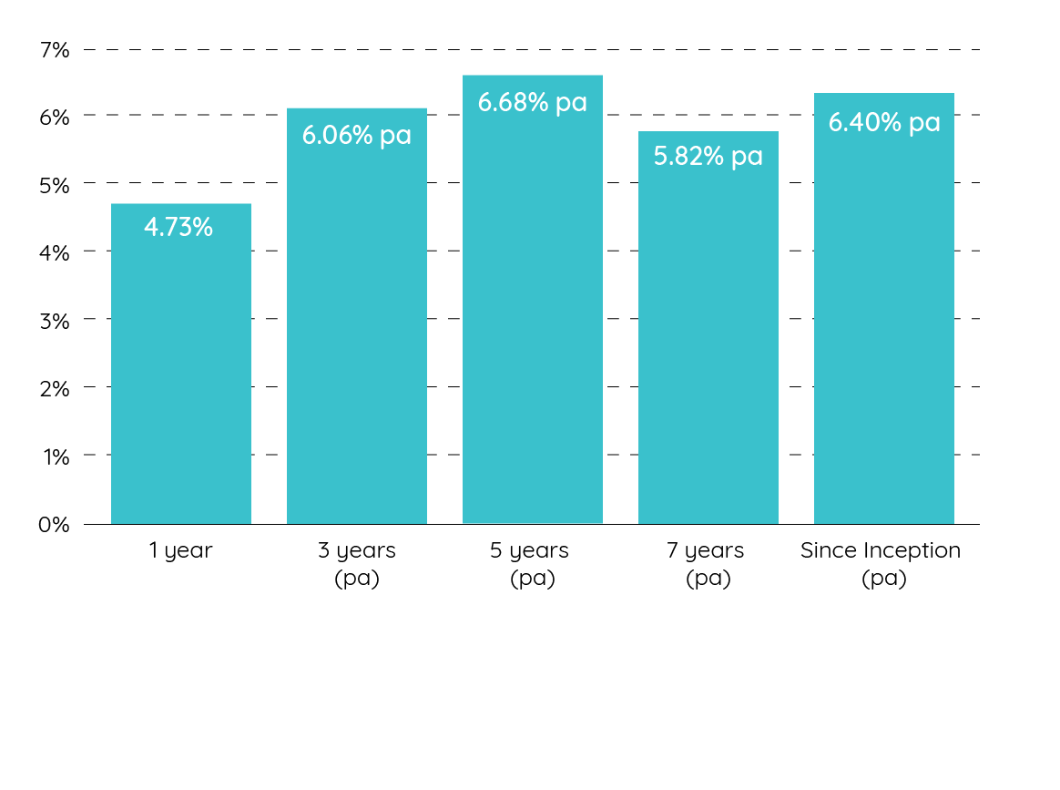 | 1 Month | 3 Month | 6 Months | 1 Year | 3 Years (pa) | 5 Years (pa) | 7 Years (pa) | 10 Years (pa) | Since Inception (pa)2 | |
